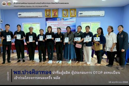 พช. ปางศิลาทอง นำทีมผู้ผลิต ผู้ประกอบการ OTOP ลงทะเบียนเข้าร่วมร้านค้าโครงการคนละครึ่ง พลัส
